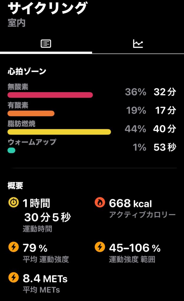 引き続きギアは52×17T、負荷は「3」で(時速32〜35kmを5分間維持+回復走で3分間)×4セット。